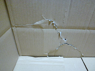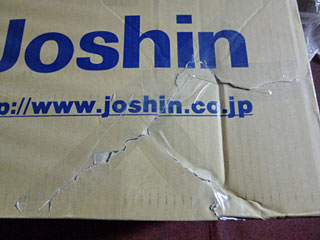 外箱の側面右下。なにこれ。どうやったらこんな潰れ方すんだよ。