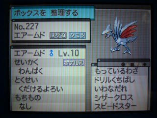 ドリームワールドでゲットしたエアームド♂を