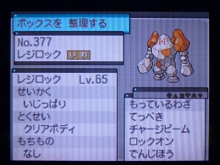 って感じでウハウハしながら、次、レジロック、レシラム、クレセリア、レジアイスと