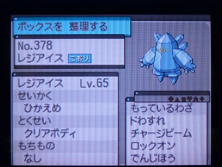 レジアイス。なかなか捕まらなくてネットボールで捕まえたっての。