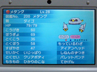 さっさと色違いダンバルを受け取って進化した姿。