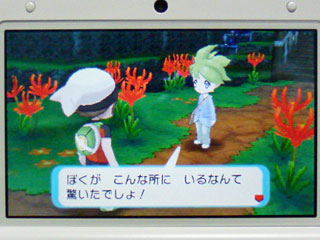 ・再び中へ。赤い花(彼岸花?)が咲いてる場所でミツルに会う。
