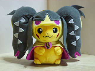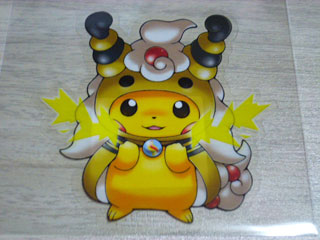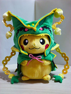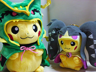 メガレックウザのポンチョを着たピカチュウ。