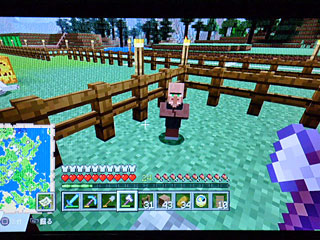 あと、ゲーム再開するとたまに村人が柵の外にいたりします。