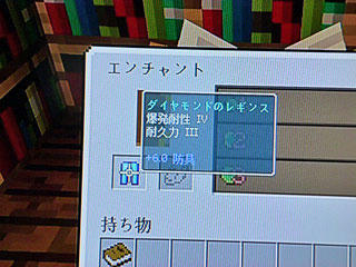 装備は、頭を除いて普段のダイヤ装備エンダーチェストに入れてたので装備し、