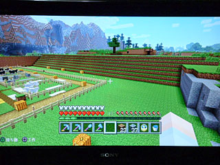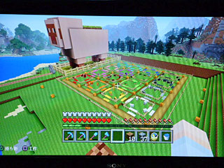 三階から外、羊の背中に出た所に小麦を植えてみたけど、うーんw