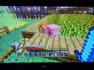 村にブタがスポーンしたので、名前付けてサドルも付けて