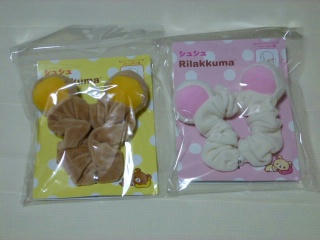 リラックマとコリラックマの耳付きシュシュ。