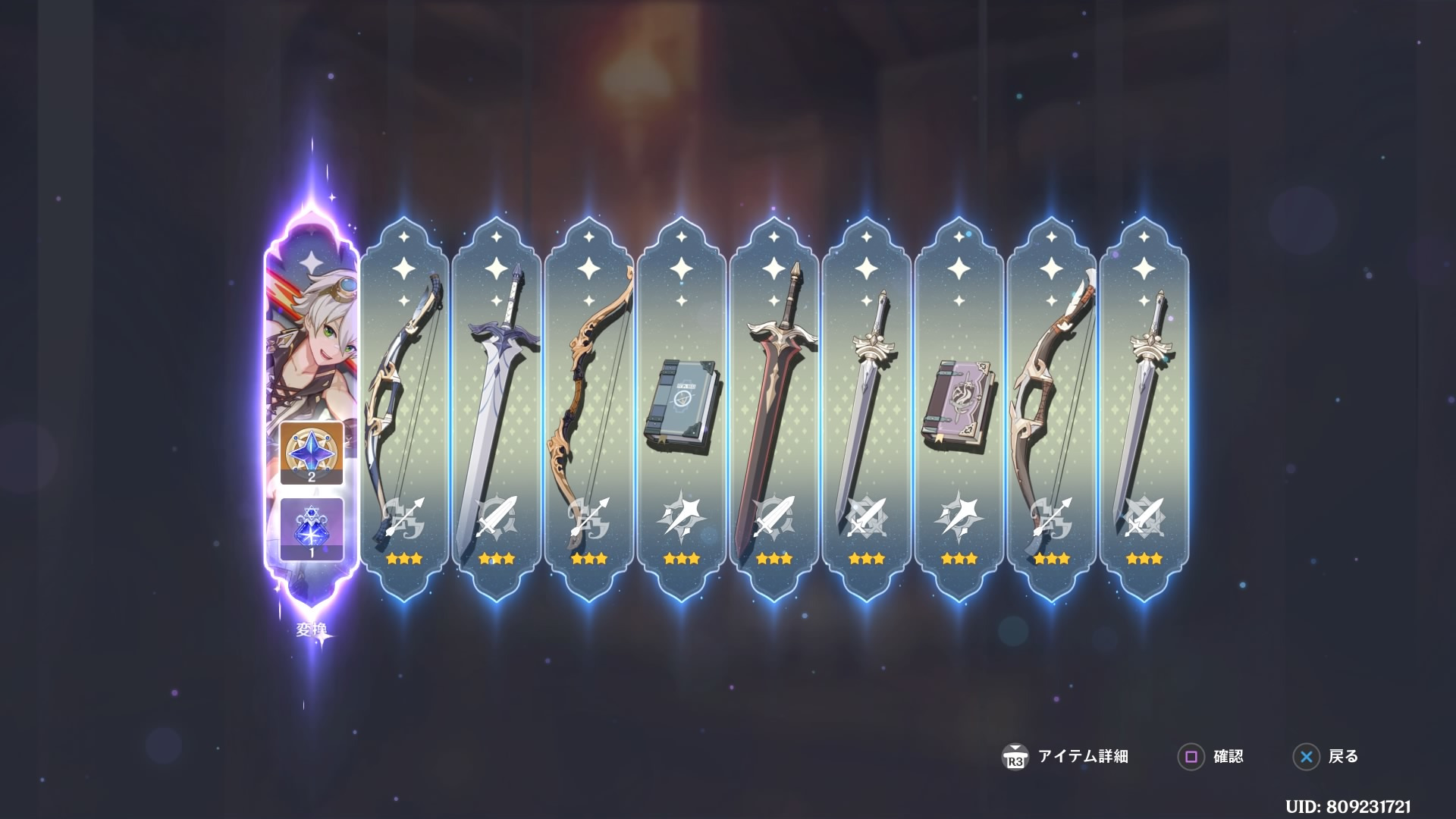 原石貰ったので、スターライトも少し交換して万葉ガチャ10連。